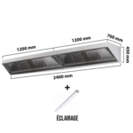 - Dimensions hotte : 2400x700x450 mm (2 x 1200x700x450mm)