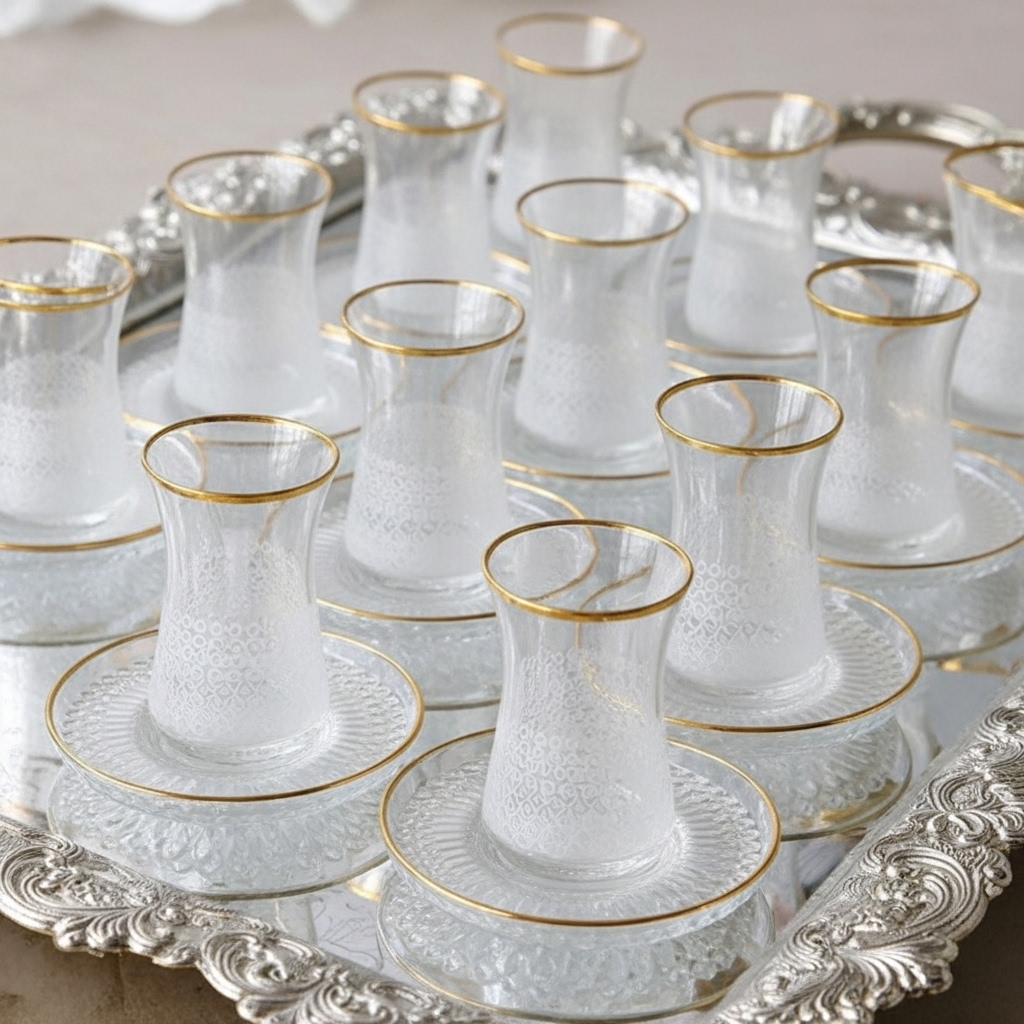 Set de 12 Verres à Thé en Verre Fin avec Liseré Doré – Élégance Laser